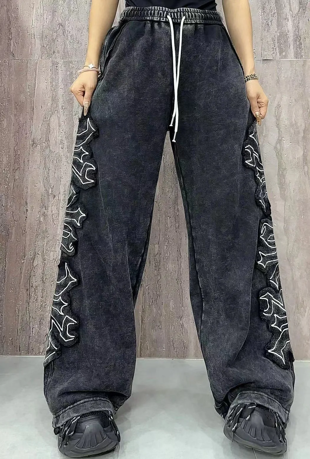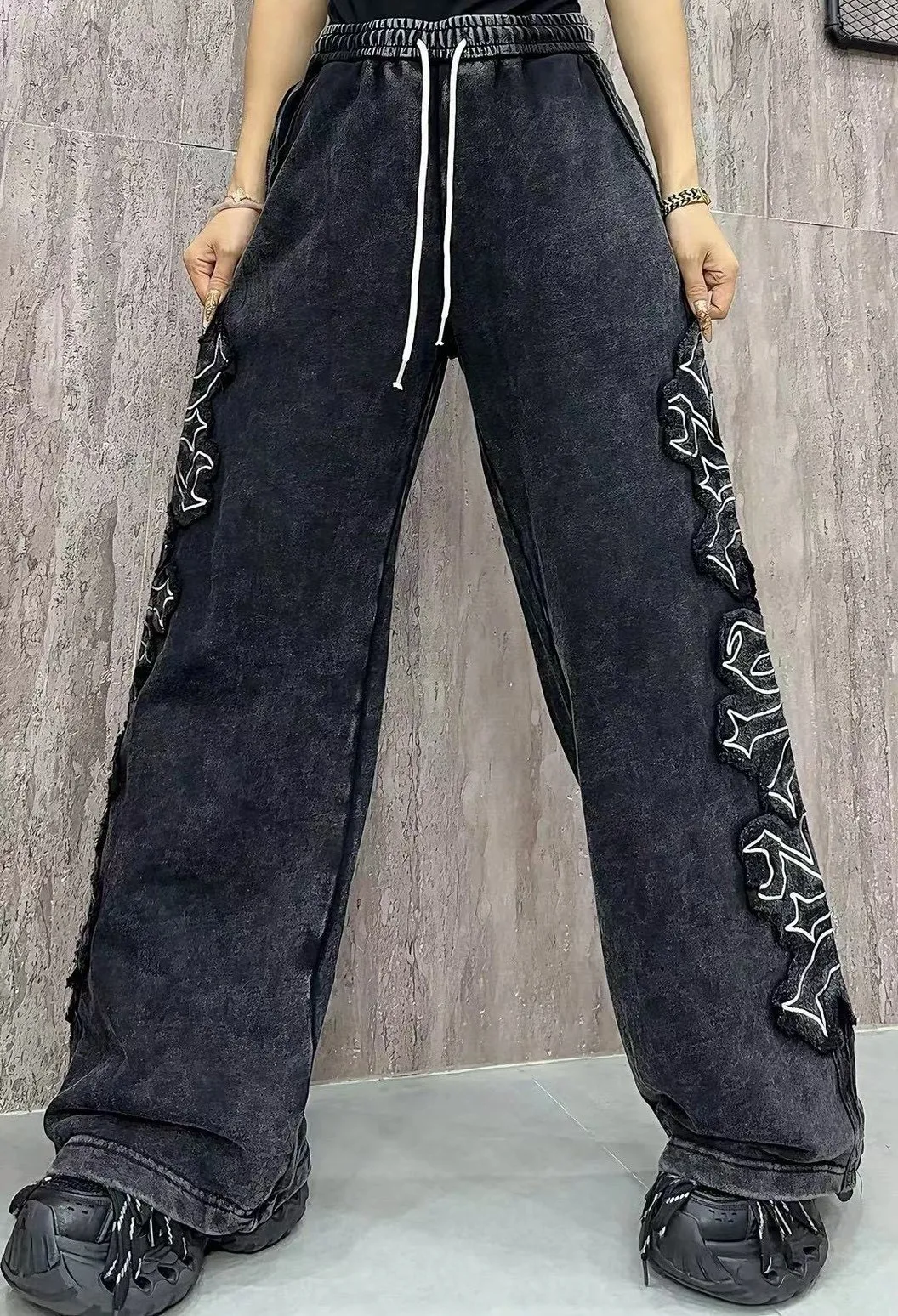 刺繡縮口褲