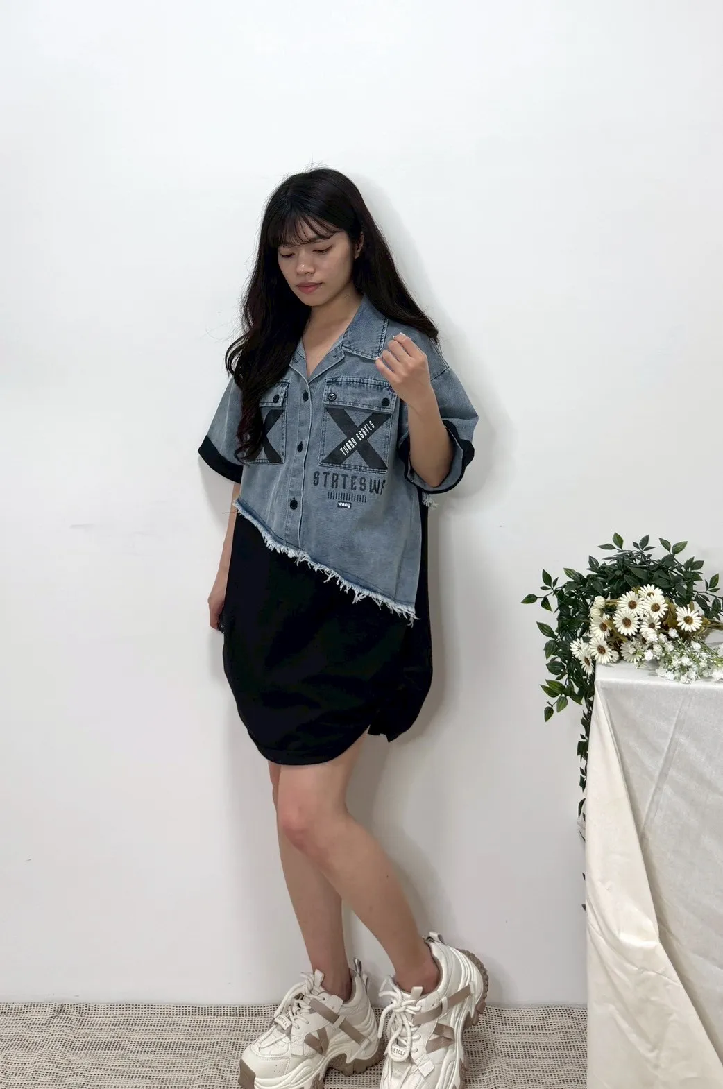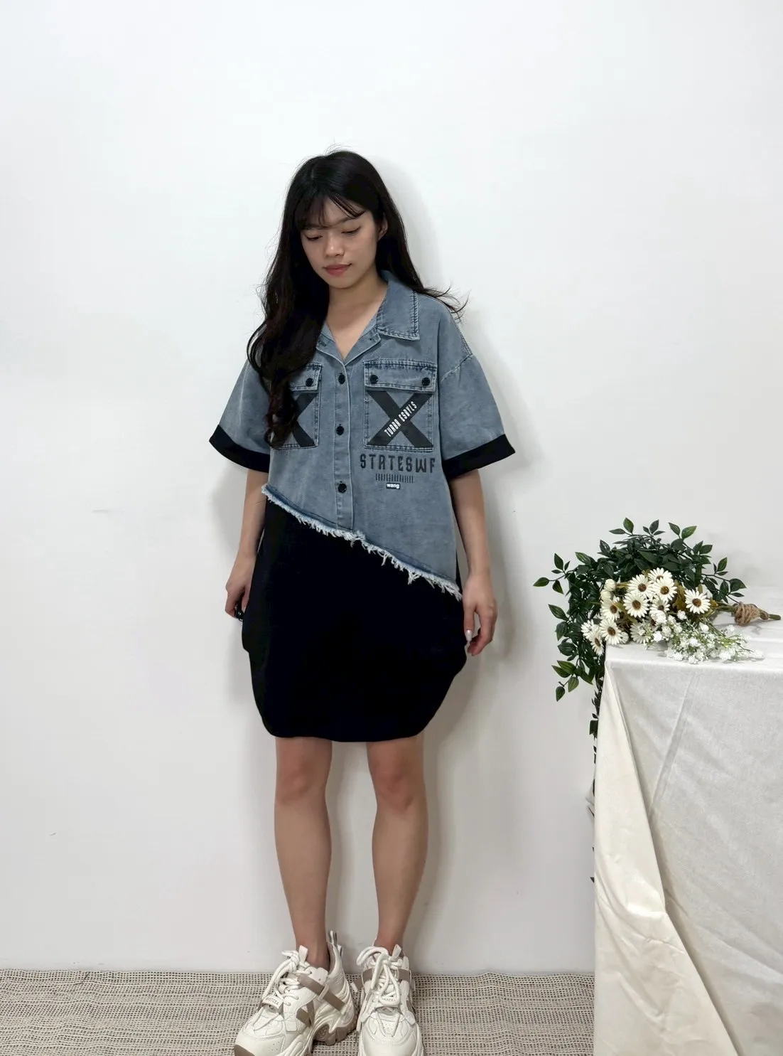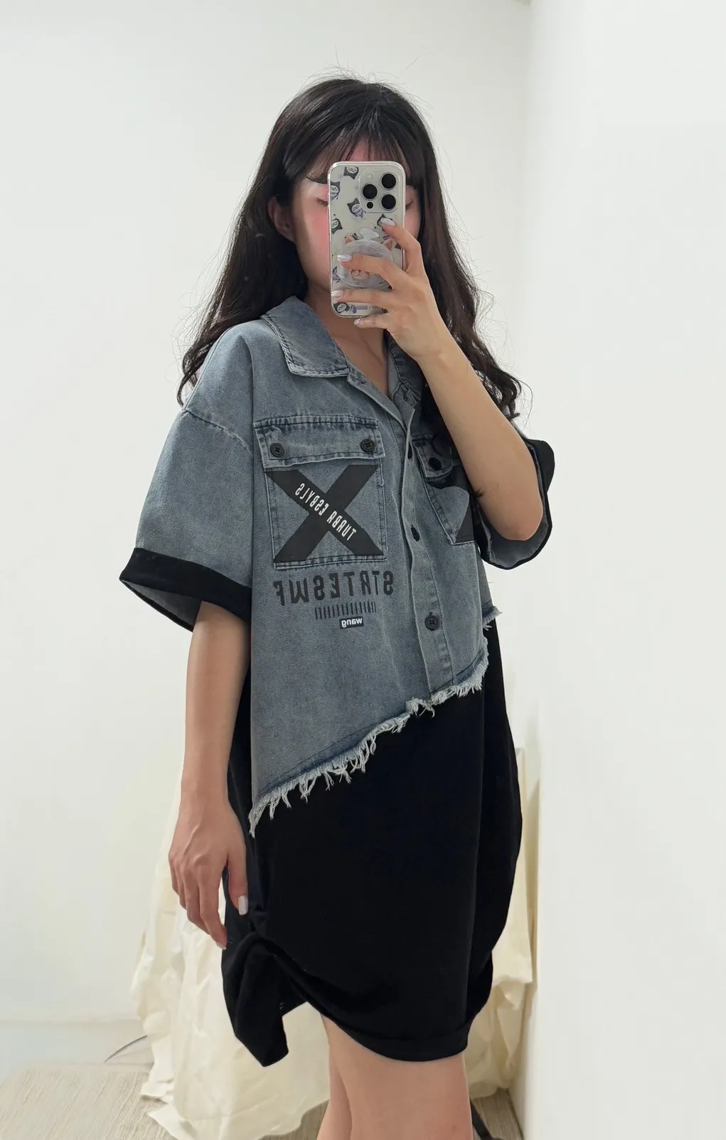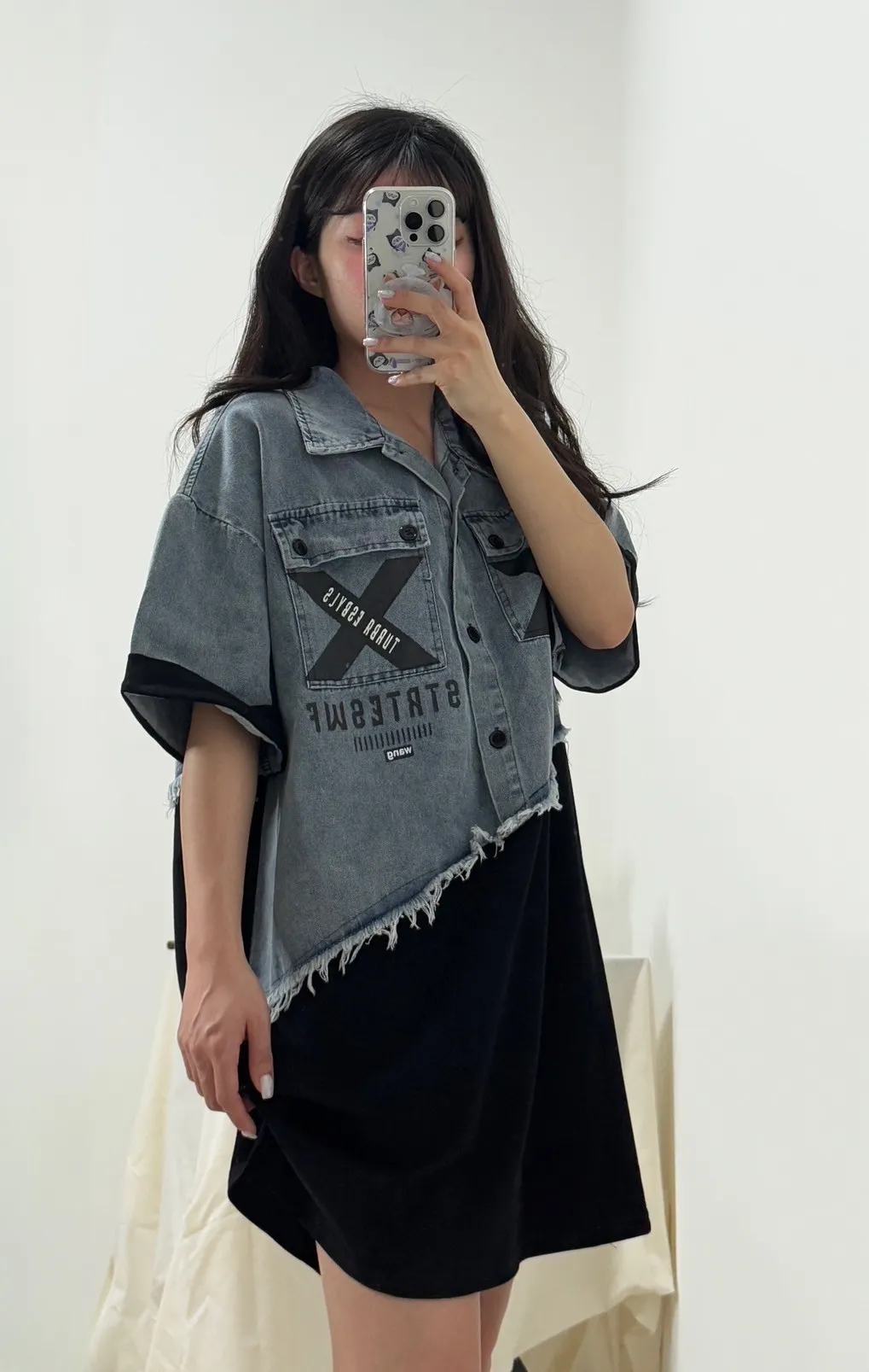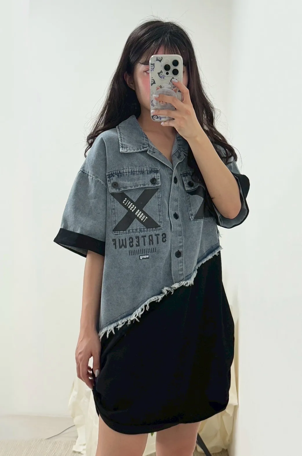 拼接牛仔上衣