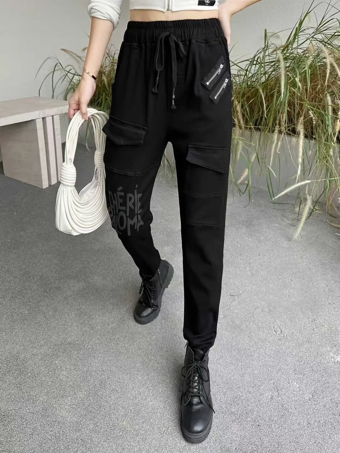 雙拉鍊哈倫褲