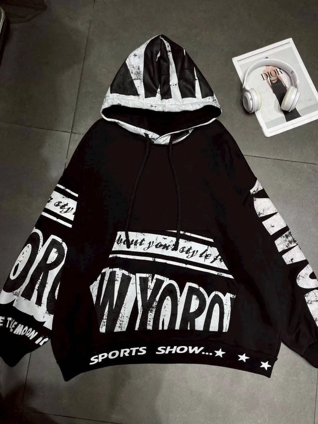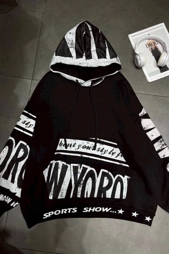 英文刷毛帽T