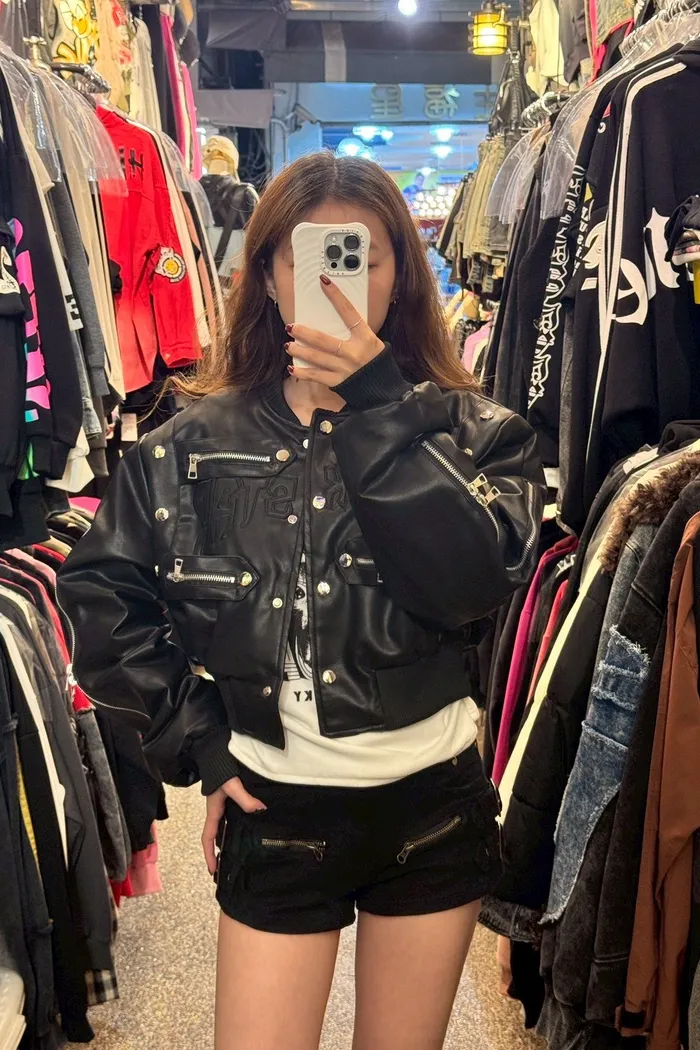鋪棉造型皮外套