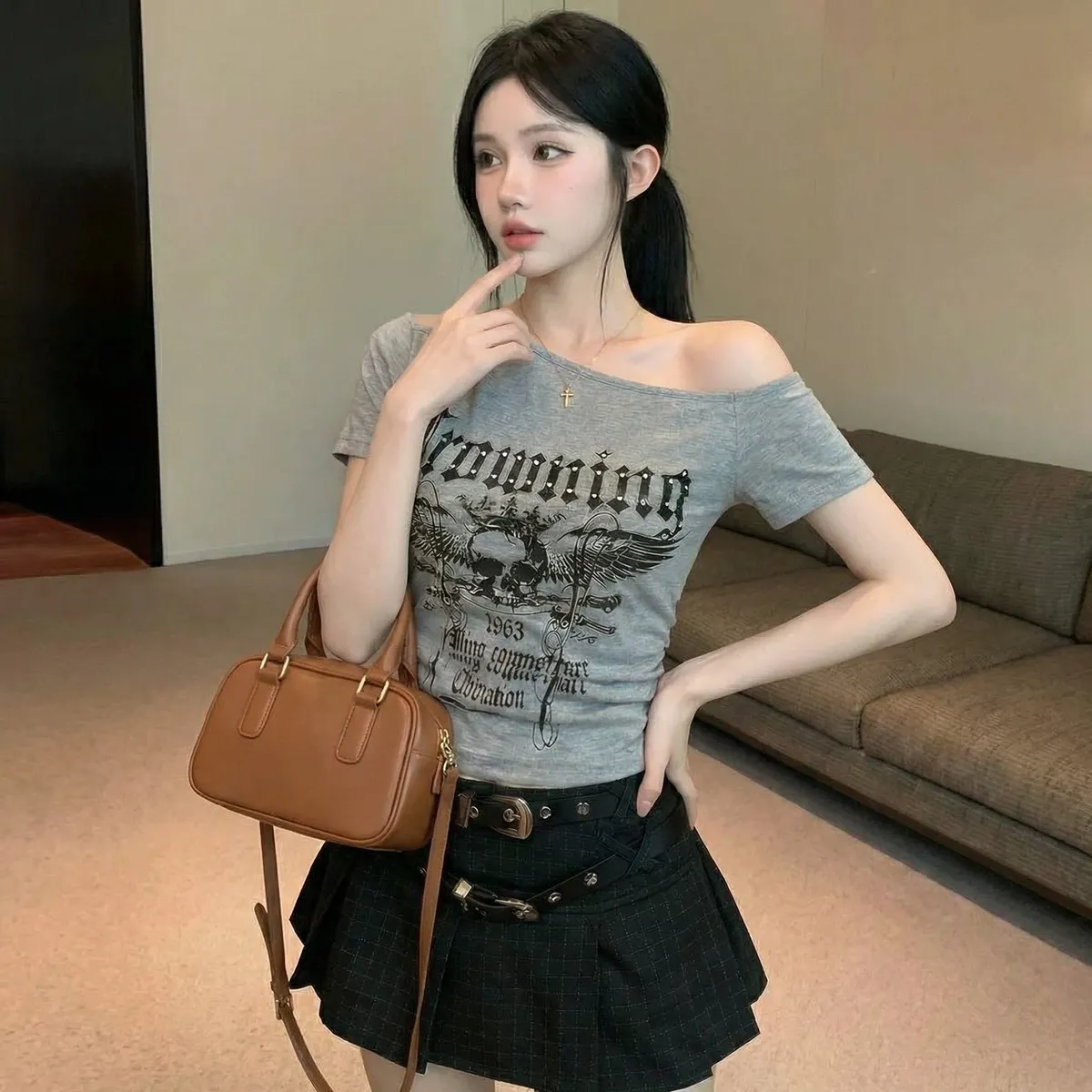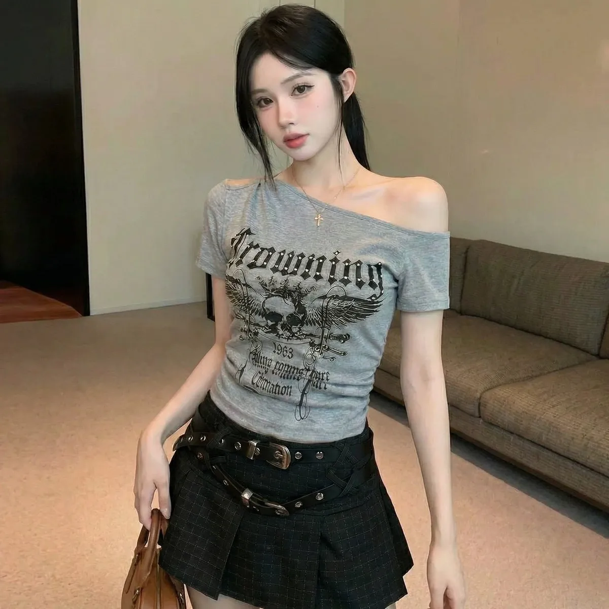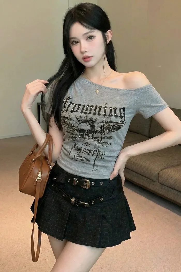 骷顱頭斜肩T