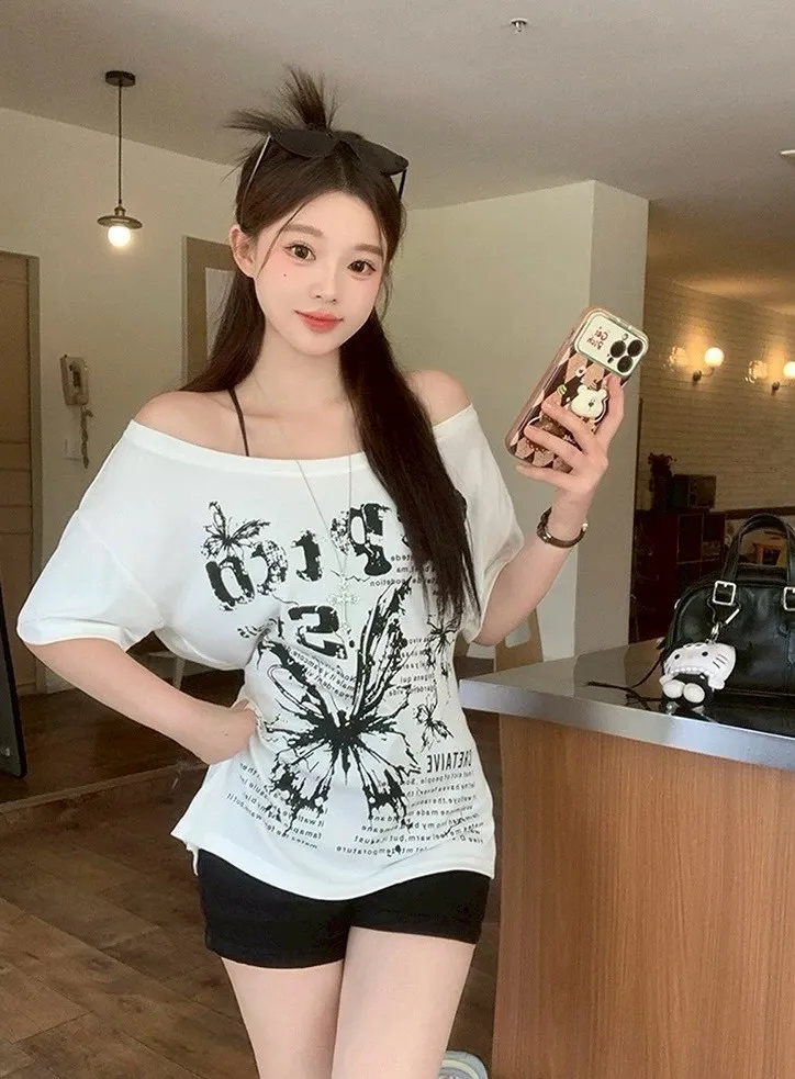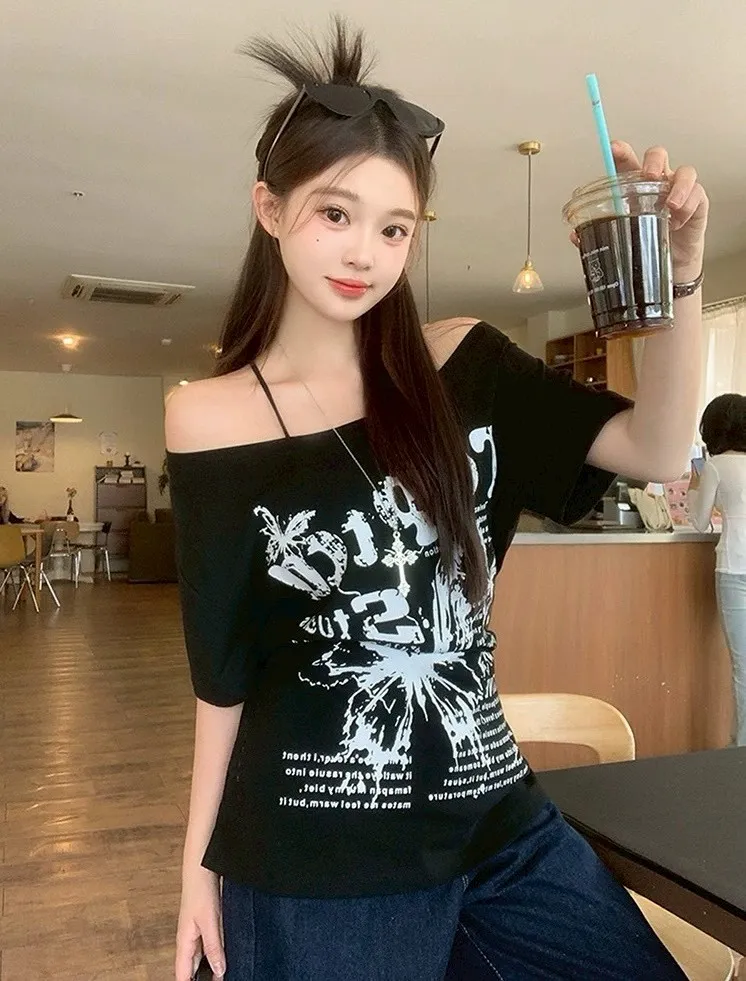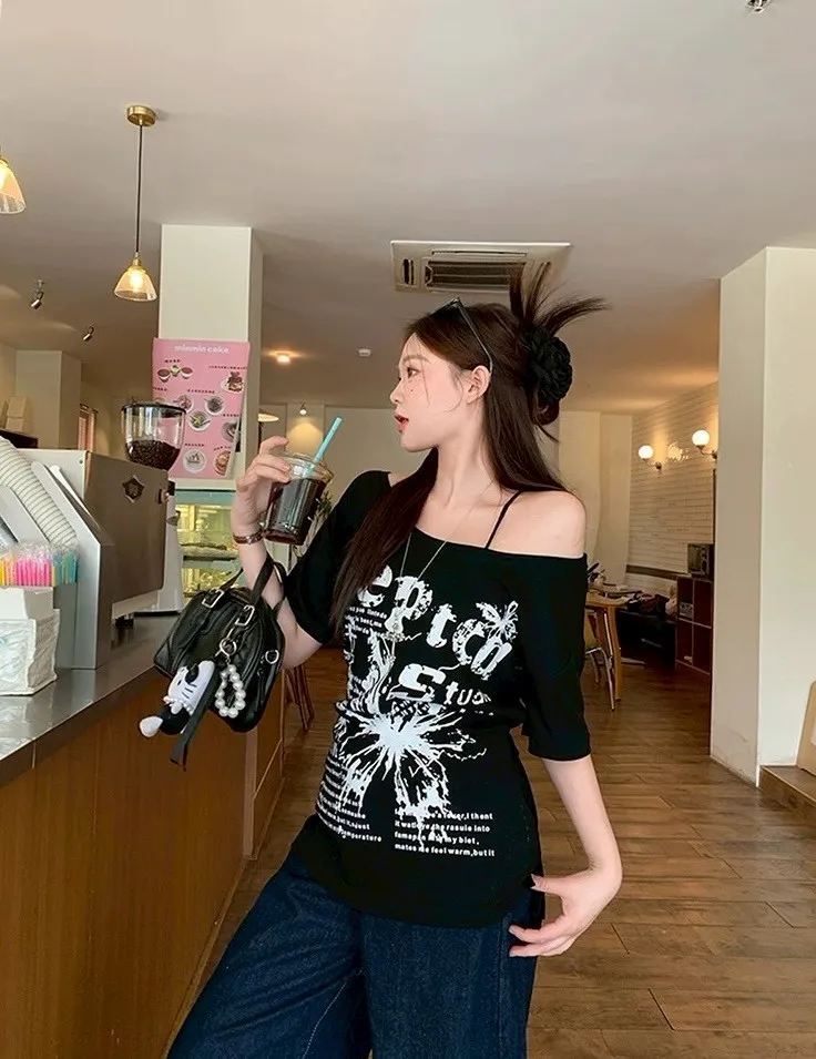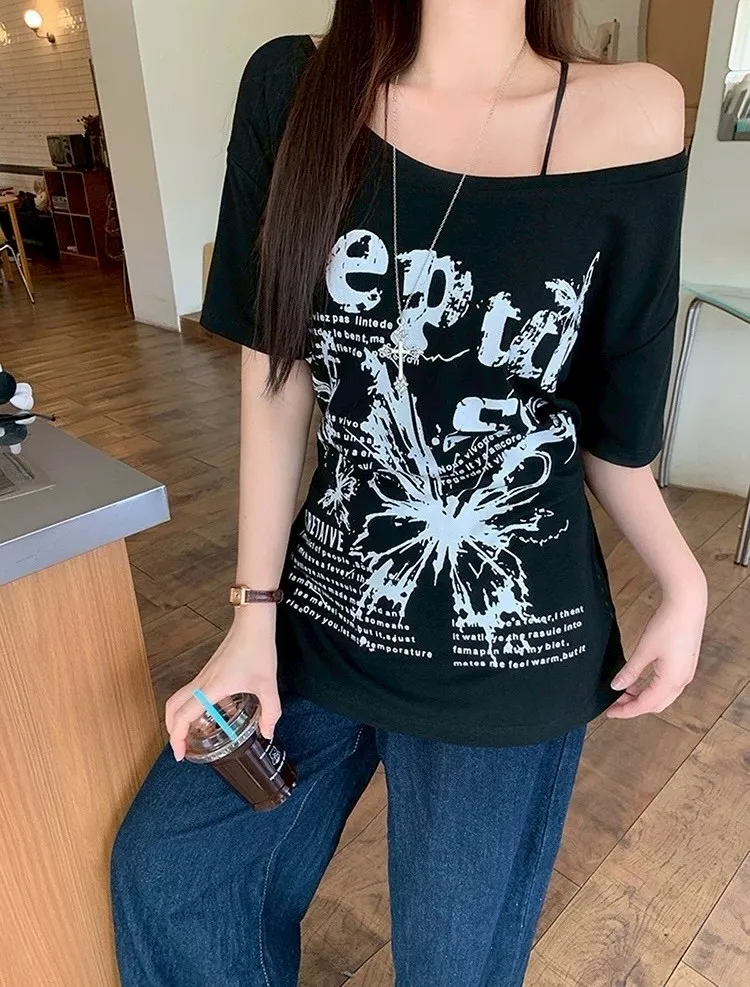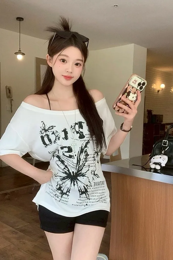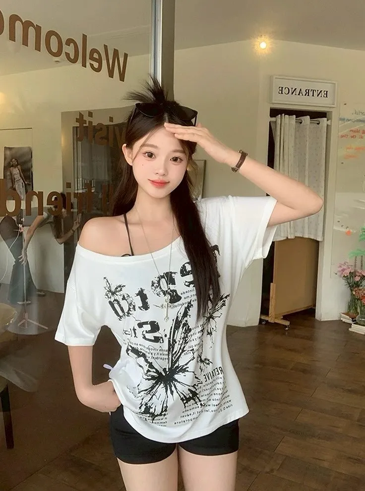 斜肩蝴蝶綁帶T