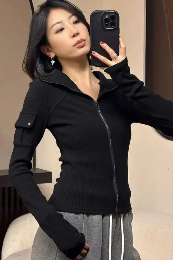 翻領針織外套上衣