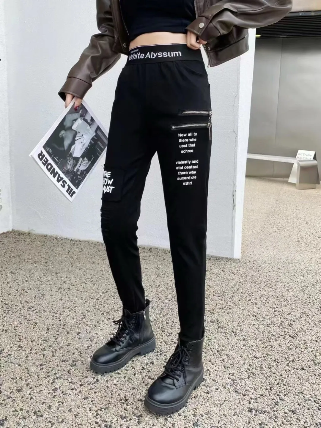 拉鍊英文鉛筆褲